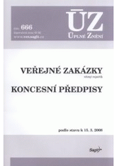 Zákon o veřejných zakázkách a koncesní zákon byly od posledního vydání dotčeny řadou změn. K těmto zákonům byly vydány tři nové prováděcí předpisy, které s dalšími sedmi tvoří kompletní soubor k dané problematice. Součástí publikace je také věcný rejstřík k zákonu o veřejných zakázkách. Podle stavu k 15. 3. 2008.