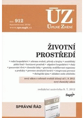 Publikace obsahuje aktuální znění 27 zákonů, které jsou rozděleny do 14 kapitol: vodní hospodářství, ochrana ovzduší, přírody a krajiny, ochrana zemědělského půdního fondu a horninového prostředí, odpadové hospodářství a obaly, posuzování vlivů na životní prostředí, nakládání s chemickými látkami a s geneticky modifikovanými organismy a produkty, prevence závažných havárií, integrovaná prevence znečišťování, ukládání oxidu uhličitého. Publikace byla doplněna o 4 nové zákony: o ochraně ovzduší, o látkách, které poškozují ozonovou vrstvu, o ukládání oxidu uhličitého a chemický zákon. Většina předpisů byla od minulého vydání dotčena řadou změn, které jsou v textech zvýrazněny tučně, odkazy na související předpisy jsou plně citovány. Za každým zákonem je přehled jeho prováděcích předpisů. Podle stavu k 9. 7. 2012.