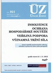 Publikace obsahuje insolvenční zákon, který byl od posledního vydání dotčen dalšími pěti novelami (50 změnových bodů), dále zákony o insolvenčních správcích, o ochraně hospodářské soutěže (36 změnových bodů účinných od 1. 12. 2012), o působnosti Úřadu pro ochranu hospodářské soutěže, dva zákony pro oblast veřejné podpory s řadou změn a zákon o významné tržní síle při prodeji zemědělských a potravinářských produktů a jejím zneužití. Součástí publikace jsou také prováděcí předpisy, z nichž některé byly novelizovány, a aktualizovaný věcný rejstřík pojmů k insolvenčnímu zákonu. Podle stavu k 1. 11. 2012.