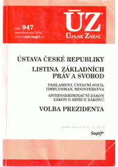 Česko. Ústava ČR: Listina základních práv a svobod ; Parlament ČR, Ústavní soud, Ombudsman, ministerstva ; Antidiskriminační zákon, zákon o Sbírce zákonů : redakční uzávěrka ... Ostrava: Sagit, [1995?]-. ÚZ : úplné znění.