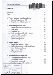 Základní poznatky z oboru bezpečnosti.První kapitola se pokouší definovat bezpečnostní vědu. Druhá je věnována teoretickému modelu bezpečnosti a jeho kategoriím. Třetí kapitola je zaměřena na různé subjektivní faktory bezpečnosti. Čtvrtá se zaobírá problematikou sociální bezpečnosti a sociálními funkcemi současných elit. Poslední se zabývá především informační a kybernetickou bezpečností.