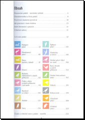Přibližně 200 domácích i cizokrajných druhů ptáků, rozčleněných podle jejich podoby.