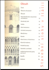 Seznamuje s jednotlivými obdobími historie stavitelství a s určujícími znaky příslučných stavebních slohů. Zařazuje stavby do slohové epochy, kdy se rysy dané epochy odrážejí v klíčových stavbách italské architektury. Knihu doplňují tematické statě o architektonických zvláštnostech, stavbách i architektech, ilustrace, přehledné mapy s nejdůležitějšími městy a stavbami, obrazové a časové lišty i krátké životopisy nejdůležitějších stavitelů a architektů.