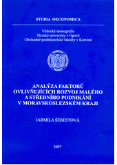ŠEBESTOVÁ, Jarmila. Analýza faktorů ovlivňujících rozvoj malého a středního podnikání v Moravskoslezském kraji. V Karviné: Slezská univerzita v Opavě, Obchodně podnikatelská fakulta, 2007, 143 s. Studia oeconomica : vědecké monografie Slezské unive