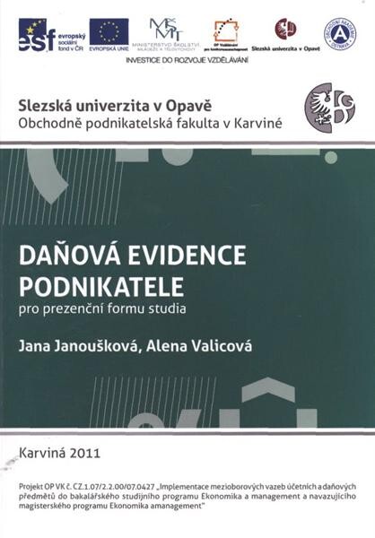 JANOUŠKOVÁ, Jana a Alena VALICOVÁ. Daňová evidence podnikatele: pro prezenční formu studia. Vyd. 1. Karviná: Slezská univerzita v Opavě, Obchodně podnikatelská fakulta v Karviné, 2011, 107 s. ISBN 978-80-7248-669-4.