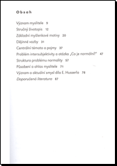 Edmund Husserl, zakladatel moderní fenomenologie, svým filosofickým dílem otevřel cestu pro určující směry a klíčové osobnosti duchovního a myšlenkového vývoje dvacátého a jedenadvacátého století. Detailní analýzy základních problémů lidského uvažování, prováděné soustavně po řadu desetiletí, ovlivňují mnohotvárnými podněty vývoj filosofie i příbuzných oborů už déle než sto let a poskytují účinné nástroje k orientaci ve světě a životě lidem způsobilým hlubší a komplexní reflexe.Husserlův přístup k otázce „Co je normální?“ zřetelně ukazuje aktuálnost a živý smysl jeho myšlení, zároveň však naznačuje možnosti věrohodné a plodné polemiky s omyly a zmatky takzvaného postmodernistického uvažování.
