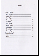 RILKE, Rainer Maria. Elegie a sonety. V tomto uspořádání vyd. 1. Přeložil Václav RENČ, přeložil Jiří GRUŠA. Praha: BB art, 2002, 117 s. Versus. ISBN 80-7257-787-5.
