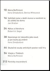 BUFFINI, Moira, ed. Moira Buffiniová, Vítejte v Thébách. Překlad Lucie KOLOUCHOVÁ. Praha: Národní divadlo, [2018]. 217 stran, 16 nečíslovaných stran obrazových příloh.