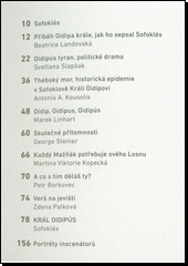 SOFOKLÉS, ed. Sofoklés, Král Oidipús. Překlad Matyáš HAVRDA, překlad Petr BORKOVEC. Praha: Národní divadlo, [2019]. 164 stran, 16 nečíslovaných stran obrazových příloh.