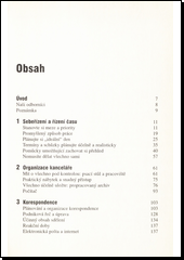Kniha je rozdělena na čtyři oddíly, které postupně seznamují čtenáře se zásadami efektivního organizování podnikatelova času k práci i k dalšímu studiu, s principy uspořádávání kanceláře, s vyřizováním korespondence včetně elektronické pošty a s podmínkami efektivního telefonování. Výklad příručky je provázen sumarizačními texty v rámečcích a dalšími grafickými značkami usnadňujícími její studium.