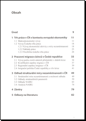 V souvislosti se dvěma ekonomickými recesemi, kterými česká ekonomika v posledních šesti letech prošla, je otázka vývoje strukturální míry nezaměstnanosti o to podstatnější. Práce prezentuje jak fakta související s vývojem české ekonomiky a trhu práce, tak výstupy ekonomického modelování s cílem odhadnutí strukturální nezaměstnanosti, která je sama o sobě nepozorovanou veličinou. Zvláštní pozornost publikace věnuje otázkám migrace zahraničních pracovníků a jejich potenciálu ovlivnit trh práce české ekonomiky. Předkládaná studie se zabývá odhadem a analýzou strukturální nezaměstnanosti v české ekonomice. Téma je velmi relevantní jak z hlediska ekonomického výzkumu, tak z hlediska ekonomické praxe, kdy odhad strukturální nezaměstnanosti představuje pro ekonomiku, která v posledních letech prošla dvěma recesemi jasně aktuální otázku. Publikaci jsme rozčlenili do tří částí. První část poskytuje širší makroekonomické zhodnocení české ekonomiky a kontextu, ve kterém se pohybuje. Důraz klademe přirozeně na trh práce. V této části rovněž vymezujeme možné jevy, které mohly mít na vývoj strukturální nezaměstnanosti v ČR vliv, stejně jako možné ekonomické veličiny, kterými je můžeme zachytit. Druhá část se zabývá samostatným problémem migrace na trhu práce a potenciálním vlivem zahraničním pracovníků na strukturní parametry trhu práce. Z analýzy v kapitole dvě plyne spíše to, že toky zahraničních pracovníků jsou strukturou trhu práce determinovány, než že by tomu bylo naopak. Třetí kapitola se pak již přímo věnuje problematice odhadu strukturální nezaměstnanosti a její analýze. Relativně podrobně se věnujeme pojmu strukturální nezaměstnanost, možnostem jejího odhadu. Přinášíme srovnání s relevantními studiemi. Strukturální nezaměstnanost odhadujeme prostřednictvím několika specifikací, přičemž výsledky z hlediska úrovně strukturální nezaměstnanosti a její dynamiky jsou obdobné. Z širší perspektivy se však zdá nejslibnější přístup, který se relativně více opírá o strukturální modelování. Nejde se o kompletní strukturální model, který s ohledem na datovou náročnost nepovažujeme v současné době pro odhady v rámci ČR vhodný. Odhady strukturální nezaměstnanosti, které prezentujeme a dále analyzujeme, jsou obhajitelné z hlediska průběhu ekonomického cyklu české ekonomiky. Všechny výsledky naznačují, že proběhlá recese v roce 2009 vedla k růstu strukturální nezaměstnanosti, která zatím pouze pozvolně klesá. Jako hlavní determinanty strukturální nezaměstnanosti se v semistrukturálním modelu ukázaly dlouhodobá nezaměstnanost, což poukazuje na efekt hystereze, a náklady práce.