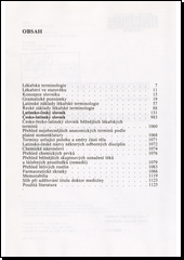 Výkladový latinsko-český a česko-latinský slovník lékařské terminologie, chemické názvosloví, přehled chemických prvků, léčivých rostlin atd.
