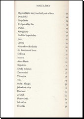 Svazek otvírají Malé lásky, sbírka půvabných, křehkých a často jemně úsměvných minipříběhů o lásce a jejím hledání, vydaná poprvé roku 1946. Jen o rok mladší povídková série Boj o Venezuelu představuje o poznání expresivnější a melancholičtější tón. Lyrické a nostalgické črty s názvem Umazané povídky pocházejí už z doby autorovy emigrace, byly vydány v roce 1955. Zlý pes bez zahrady, řada autobiografických próz z předválečné Prahy, pochází z roku 1996. Následuje soubor krátkých reflexivních próz, prožitků a úvah, shrnutý roku 2001 pod titulem Chinatown s Rózou a posledním oddílem tohoto svazku je Silva rerum, kolekce stylisticky rozmanitých děl, sahajících od lakonických gregerií přes drobná zastavení a zamyšlení až po ucelené fejetonistické úvahy či vzpomínky. Tyto texty se zde objevují v prvním vydání. Nejvýraznější půvab Listopadových próz kteréhokoli období spočívá v práci s jazykem, v němž dokáže s lehkostí nacházet precizní i poetické novotvary i vytvářet překvapující a významuplná spojení těch nejobyčejnějších slov.
