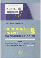 DĚDIČ, Jan. Obchodní právo po vstupu ČR do EU, aneb, Co všechno se po 1. květnu 2004 v obchodním právu změnilo?. Vyd. 1. Praha: BOVA POLYGON, 2004. 366 s.