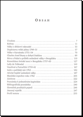 Autor zdůrazňuje v úvodní kapitole, že tato válka znamenala skutečně první světový konflikt před Velkou francouzskou revolucí - i tím, že zasáhla nejen do evropského vývoje, ale i do situace v Americe, Asii a v Africe. Sleduje s důkladnou pozorností kořeny války i to, jak byl spor přenesen z Evopy i do britských a francouzských koloniálních válek v Indii. Podrobně popisuje jednotlivé fáze konfliktu od r. 1751 až do r.1765 - ke konečnému vítězství Velké Británie. V této souvislosti věnuje pozornost i francouzským a britským vojevůdcům a jejich osudům. Jde tedy zejména o konflikt v Asii. Africkému bojišti sedmileté války je věnována jedna kapitola. - Kniha má důkladně zpracované poznámky k jednotlivým kapitolám, obsáhlou bibliografickou poznámku, slovníček použitých pojmů (z perštiny a arabštiny) a rozsáhlý jmenný rejstřík.