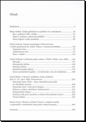 Publikace vycházející v edici Česká společnost po roce 1945 představuje pět sociálně-historických studií. Milan Otáhal se věnuje problematice nástupu Gustáva Husáka a jednotlivým klíčovým aspektům „obnovování pořádku“ stejně jako přirozené obraně české společnosti reagující na masové čistky a nové opatření kádrové politiky. Tomáš Vilímek se soustředil na jednotlivé komplexy příčin ekologické, ekonomické, politické a morálně sociální destabilizace režimu v ČSSR a NDR v roce 1989. Květa Jechová přispěla studií o postavení ženy v české společnosti, v níž upozorňuje, že podrobnější poznání úlohy ženy v minulosti je nezbytným předpokladem k tomu, aby výklad dějin překročil rámec politických dějin a zahrnul i dimenzi obyčejných lidí. V pojednání o historii publikace Sedm pražských dnů 21.–27. 8. 1968 se David Weber neomezuje pouze na bezprostřední souvislosti vzniku tzv. černé knihy, zabývá se i postupným zapojením Historického ústavu ČSAV do obrodného procesu a jeho pracovníků do protiokupační rezistence. Poslední studie Martina France o vánočních svátcích v českých zemích v 50. a 60. letech představuje téma jako konkrétní příklad specifické ambivalentní funkce svátků a konsumu za komunistického režimu.