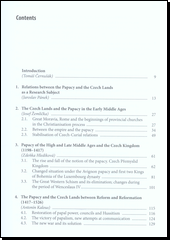 Kapitoly sledují vývoj vzájemných vztahů mezi papežstvím a českými zeměmi od raného středověku až do současnosti.