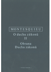 Druhý díl tohoto zásadního spisu dějin politické filosofie a politickésociologie nebyl dosud nikdy do češtiny přeložen, přestože dvousvazkovédílo tvoří jednolitý celek. Stejně jako první díl i tento svazek je opatřen předmluvou překladatele a vysvětlivkami. Součástí knihy je téžpřeklad Obrany „Ducha zákonů“, v níž se Montesquieu vyrovnávás útoky jezuitů a jansenistů na svou knihu.