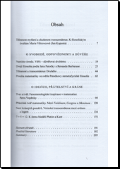 Texty shromážděné v této knize představují autorčinu filosofickou práci, která čerpá inspiraci z fenomenologické filosofie (hlavně Patočky, Lévinase a Barbarase) a Platónových dialogů.Dotýkají se klíčových otázek filosofie matematiky, zejména její fundace, ve světle fenomenologických zkoumání existence, vnímání a rozumění. Kniha tak nabízí originální promýšlení oblastí, kde se matematika s filosofií setkávají či překrývají, s důrazem na témata tělesnosti myšlení, zkušenosti transcendence, tvaru a tváře, svobody, odpovědnosti a důvěry.