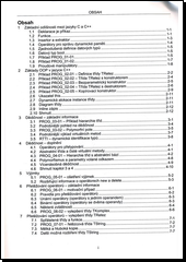 Kniha je určena všem zájemcům o objektové programování v jazyce C++, kteří již mají předchozí znalosti jazyka C. Text je budován tak, aby čtenář mohl postupně vlastními silami pochopit objektové programování v jazyce C++. Výklad je doplněn celkem 39 řešenými příklady. První kapitola uvádí základní odlišnosti mezi jazyky C a C++ bez ohledu na objektové vlastnosti. Jedná se zejména o přetěžovaní a implicitní parametry funkcí, volání odkazem a použití proudů. Ve druhé kapitole se seznámíme se základy objektového programování v C++. Budou vysvětleny pojmy: zapouzdření, atribut, metoda, úroveň přístupu, konstruktor a destruktor. Kapitoly 3 a 4 vysvětlují dědičnost a spojené pojmy jako polymorfismus, virtuální metody, RTTI, abstraktní třídy, čisté virtuální metody. V páté kapitole se probírají výjimky a jsou doplněny informace o operátorech new a delete. Kapitoly 6 a 7 probírají přetěžování operátorů. Formou praktických příkladů je ukázáno přetížení operátorů pro práci s komplexními čísly a realizace třídy pro práci s řetězci. Dále jsou vysvětleny související pojmy spřátelených tříd a funkcí, mělká a hluboká kopie. Osmá kapitola doplňuje informace k proudové knihovně. Je uvedena hierarchie proudů, proudy specializované na práci se soubory a řetězci. Připojena je též ukázka definování uživatelských proudových manipulátorů. Devátá kapitola probírá konstantní a statické členy, tedy konstantní a statické atributy nebo metody. Kapitoly 10, 11 a 12 jsou věnovány abstraktním datovým typům (ADT). Nejdříve jsou zopakovány obecné informace o datových typech, dále se probírají pojmy signatura a axiom. Jednotlivé příklady jsou zaměřeny na jednosměrný spojový seznam, polymorfní seznam, zásobník, frontu a obousměrný seznam s ukazovátkem. Třináctá kapitola probírá šablony a genericitu, hlavním příkladem je šablona zásobníku. Čtrnáctá kapitola doplňuje zbývající rysy jazyka C++ tedy prostory jmen a ukazatele do tříd. Patnáctá kapitola je úvodem do standardní knihovny šablon (STL). Probírány jsou zejména šablony vector a map a dále iterátory a algoritmy. Historie vydání 1.