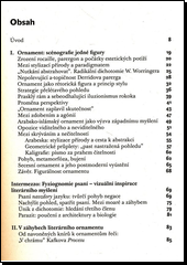 Autor chápe literární psaní jako vizuální pohyb. Vizuálně je chápán i proces čtení uměleckého textu. Tento proces Jirsa nazývá fyziognomií psaní. První část studie pojednává o ornamentu z hlediska historicko-teoretických východisek. Zkoumá tak jednotlivé dějinné a kulturní epochy (gotika, rokoko, moderna, arabsko-islámská kultura), jejich vztah k ornamentu a projevy v procesu literárního psaní. Teorie pojmu psaní a vizuální čtení je vykládána z hlediska poststrukturalismu a dekonstrukce. V analytické části práce autor interpretuje vybrané texty literatury 20. století (Franz Kafka, Rainer Maria Rilke, Hugo von Hoffmannsthal, Samuel Beckett). Závěr je věnován problematice schizofrenního psaní a jeho vazbám na ornament. Publikace je autorovou zrevidovanou disertační prací.