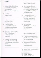 Osm vybraných sond do různých aspektů čínské a také japonské kultury, včetně studie o lidovém umění vycházející z naší domácí zkušenosti, se různým způsobem dotýká obecných problémů tradice a její interpretace, kulturní kontinuity, způsobů poznávání jiného a obohacování sebe sama.