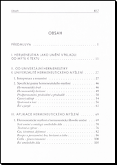 Cílem této knihy je postihnout vznik, formování a vývojové proměny teorií rozumění a hermeneutických koncepcí v rámci dějin novodobé filosofie. Kniha je určena nejen studentům filosofie, ale také všem, kdo se ve svém oboru dotýkají otázek porozumění, interpretace a výkladu: historikům, teoretikům umění, literárním a filmovým vědcům, teologům, religionistům, filologům, právníkům a dalším.