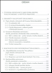 V dobovém kontextu proměny epistemologického paradigmatu nám autor představuje dvě významné postavy renesanční skepse, ikonu tzv. politických realistů N. Machiavelliho a představitele křesťanského humanismu D. E. Rotterdamského. Rozumnost, formální logika a ostrá hranice mezi významovými binárními opozicemi prostupuje celým tímto dílem. Výsledná forma představuje svým způsobem hyperracionální komplex, který pevně podpírají dva apoštolové ratia. Hermeneutické větvení hodnot zpracované metodou obsahové analýzy a vtělené do kontextuálních metafor završuje celý proces a přitakává víceznačnému autorovu postulátu ,,smysl se tedy neztrácí v dějinách politického myšlení, ale odvíjejí se od něj".