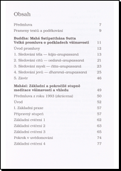 První část knihy – překlad návodu na meditaci podle Buddhy z kanonického jazyka pálí. Druhá část je praktický návod na meditaci napsaný Mahásim Saydó. Třetí část knihy obsahuje další vysvětlení Buddhovy meditace všímavosti a vhledu, která se v Evropě prosadila jako část praxe Áyukusala. Kniha je praktickým základem, který doplňuje knihy o původním Buddhově učení.