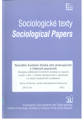 KŘÍŽKOVÁ, Alena a Lenka VÁCLAVÍKOVÁ-HELŠUSOVÁ. Sociální kontext života žen pracujících v řídících pozicích: analýza odlišností životních postojů a názorů mužů a žen v české společnosti v závislosti na jejich pracovním postavení. 1. vyd. Praha: Soci