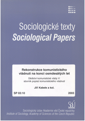 KABELE, Jiří. Rekonstrukce komunistického vládnutí na konci osmdesátých let: dědictví komunistické vlády V: sborník popisů komunistického vládnutí. 1. vyd. Praha: Sociologický ústav AV ČR, 2003, 202 s. Sociological papers =, Sociologické texty, SP