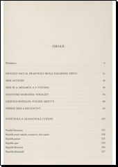 Podstatnou část publikace tvoří texty písní a árií z pěveckých učebních pomůcek (Vaccai, Parisottiho arie antiche, Marchesiho vokalízy, Koželuhovy arietty) a frekventované árie z několika desítek oper. Všechny texty (celkem přes 350 ) jsou podloženy doslovným překladem. Árie z dnes provozovaných oper jsou uvedeny v kontextu celého díla. Další částí skripta jsou cvičení, zaměřená především na výslovnost. V menší míře obsahují odkazy na gramatiku, slovní zásobu a reálie. Lexikálně vycházejí cvičení z divadelní praxe a z chyb, kterých se dopouštějí interpreti při studiu konkrétních titulů.
