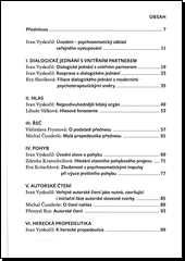 Publikace představuje psychosomatické disciplíny (dialogické jednání s vnitřním partnerem, hlas, řeč, pohyb, autorské čtení, herecká propedeutika), jak je pojímá prof. Ivan Vyskočil a jeho kolegové z katedry autorské tvorby a pedagogiky DAMU. Pedagogické souvislosti jsou dílem prof. Vlastimila Švece a jeho kolegů (UTB Zlín, resp. PedF MU Brno).