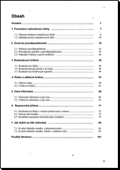 Teorie rozhodování a rizika zaznamenala v posledních dvaceti letech prudký rozvoj, ale tato příručka je skromnější, protože je určena především začínajícím studentům, kteří s danou oblastí nemají téměř žádné zkušenosti. Asi třetina textu představuje rozšířené opakování základů počtu pravděpodobnosti, zatímco další dvě části jsou věnovány postupu používanému u elementárních rozhodovacích úloh, významu nevýběrových informací různého typu při rozhodování, ceně dokonalé a výběrové informace, užitkové funkci, nejčastějším chybám lidí při rozhodování a základním myšlenkám bayesovského přístupu ke statistickým úlohám. Předkládaná příručka je základní studijní materiál pro studenty předmětu, který je pod stejným nebo podobným názvem přednášen na bakalářském i magisterském stupni vysokých škol s ekonomickým zaměřením různého typu.