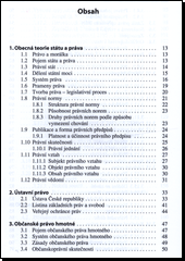 Publikace poskytuje studentům i laické veřejnosti možnost zorientovat se v základních pramenech práva. Zpracovává zásadní změny práva, které nabyly účinnosti 1. ledna 2014 a které přinesl zejména nový občanský zákoník. Ve dvanácti kapitolách zpracovává právo: ústavní, občanské, korporační, živnostenské, pracovní, trestní, rodinné, správní a právo Evropské unie. Učebnice má schvalovací doložku MŠMT a byla zařazena do seznamu učebnic pro střední školy pro vzdělávací oblast Občanský a společenskovědní základ, Člověk a svět práce, Společenskovědní vzdělávání a Podnik, podnikové činnosti a řízení podniku s dobou platnosti šesti let. Publikaci využijí studenti středních i vyšších odborných škol, přínosná bude pro všechny, kteří se chtějí seznámit se základy práva České republiky.