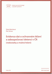BLATNÍKOVÁ, Šárka. Evidence dat o ochranném léčení a zabezpečovací detenci v ČR: (nedostatky a možná řešení). Vydání: první. Praha: Institut pro kriminologii a sociální prevenci, 2019. 115 stran. Studie.