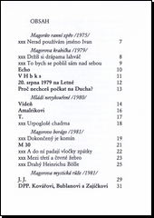 Jirousovy první verše z poloviny 70. let minulého století jsou ještě ovlivněny tvorbou Egona Bondyho. Byly uspořádány jako krátké textové útvary, které těžily z dadaistických předloh nebo z říkánkové poetiky, přičemž odkazovaly na reálné postavy autorova okolí, případně na jeho samého. V dalších letech se pak Magorův verš proměnil do větších celků, které v sobě nesly intimní a křesťanské motivy. Významné místo v tomto výboru zaujímá pak dvaadvacet ukázek z Jirousovy vrcholné sbírky Magorovy labutí písně, která byla napsána v normalizačním vězení. Formou pravidelně rýmovaných textů v ní autor zachytil zápas o vlastní identitu, přičemž zároveň dokázal vzpomínat i na řadu svých přátel i na všední a obyčejný svět, jenž se pro něho však v dané chvíli stává zcela nedostupným.