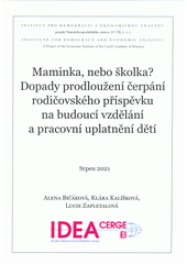 BIČÁKOVÁ, Alena. Maminka, nebo školka? Dopady prodloužení čerpání rodičovského příspěvku na budoucí vzdělání a pracovní uplatnění dětí. Praha: Národohospodářský ústav AV ČR, v.v.i., 2021. 32 stran. Studie, 6/2021.