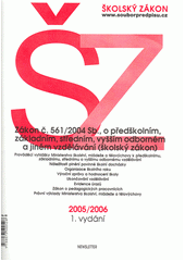 Česko. Školský zákon - ŠZ: zákon č. 561/2004 Sb., o předškolním, základním, středním, vyšším odborném a jiném vzdělávání (školský zákon) : 2005/2006 : prováděcí vyhlášky Ministerstva školství, mládeže a tělovýchovy k předškolnímu, základnímu, střednímu