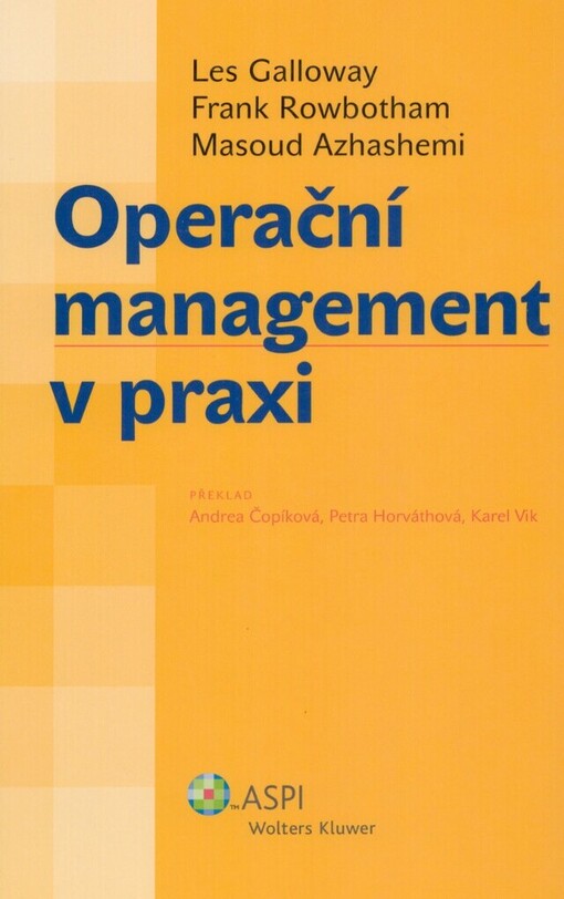 GALLOWAY, R. L. Operační management v praxi =: Operations management in context. Vyd. 1. české. Praha: ASPI, 2007. 399 s.