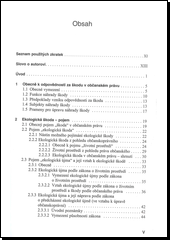 Autor v knize přistupuje k problematice ekologických škod z pohledu civilního práva a systematicky zpracovává i další, speciální právní úpravy týkající se tohoto tématu, jako je zákon o ochraně přírody a krajiny (č. 114/1992 Sb.), zákon o ochraně zemědělského půdního fondu (č. 334/1992 Sb.), zákon o vodách (č. 254/2001 Sb.), zákon o lesích (č. 289/1995 Sb.), zákon o nakládání s geneticky modifikovanými organismy a genetickými produkty (č. 78/2004 Sb.) nebo horní zákon (č. 44/1988 Sb.). Kniha obsahuje obecný výklad o odpovědnosti za škodu v občanském právu, pojmové vymezení ekologické škody, výklad o předpokladech vzniku odpovědnosti za škodu, výklad o povaze jednotlivých složek životního prostředí v občanském právu, pojednání o způsobu a rozsahu náhrady škody, výklad o promlčení a rozbor platné právní úpravy s dodatkem o možných trendech budoucí právní úpravy. Komplexnost zpracování této knihy nemá v české odborné literatuře dosud obdoby.