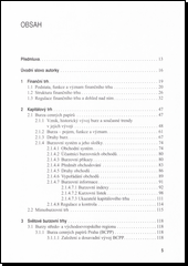 Publikace přináší ucelený a srozumitelný pohled na problematiku kapitálových trhů s vysvětlením základních otázek a aspektů jeho fungování. Autorka uvádí do světa nástrojů, jež jsou na kapitálových trzích obchodovány, včetně základních principů jejich analýzy. Vedle toho popisuje další desítku burzovních institucí včetně nového zařazení východoevropského regionu. Východiskem knihy je samotné pojetí finančních a kapitálových trhů, jejich významu, struktury a regulací s navazujícím pojednáním o světových burzách.