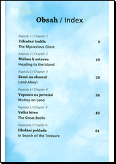 Zkrácený a převyprávěný příběh o dobrodružné honbě za pokladem kapitána Flinta. Dvojjazyčné vydání v bohatě ilustrované knížce pro mladší děti mírně až středně pokročilé v angličtině.