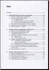Autorka v knize reaguje na moderní trendy v řízení sportovních organizací, které směřují k jejich efektivní práci. Zabývá se celou řadou podnětů pro praktické vedení organizací ziskového i neziskového charakteru v oblasti plánování jejich aktivit, organizování a řízení sportovních akcí. Seznamuje čtenáře s přípravou sponzorských aktivit, s možnostmi prodeje sportovní reklamy, nabízí náměty pro podnikání v tělovýchovných a sportovních službách, radí, jak připravit marketingové plány. Dále nastiňuje, jak se chová trh v oblasti sportu, jaká má specifika, předkládá vhodné taktiky a strategie, jak prodávat sportovní produkty, a upozorňuje na rizika, která lze na trhu sportu nalézt.