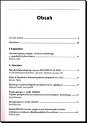 Sborník Diabetologie 2013 vychází letos v poněkud větším rozsahu než v předešlých letech a podílelo se na něm 33 autorů z různých pracovišť v ČR a jeden autor ze Slovenska. Obsah sborníku tvoří 38 příspěvků, které jsou rozděleny do těchto sekcí: I. K zamyšlení, II. Koncepce, III. Kardiologické okénko, IV. Endokrinologické okénko, V. Životospráva, VI. Terapie diabetes mellitus, VII. Prevence a léčba komplikací, VIII. Také důležité, IX. K debatě, X. Právník se vyjadřuje. Významná část sborníku je věnována přehledu nových lékových skupin, které v této chvíli přicházejí na trh nebo jsou ve stadiu pokročilého výzkumu. Některé skupiny jsou variací na již dobře známé terapeutické modality, jiné využívají intervenci nově rozpoznaných metabolických souvislostí pro dosažení kýženého cíle – bezpečné a účinné terapie diabetu 2. typu