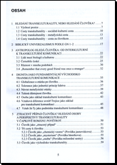 Syntagmatické spojení transkulturní komunikace, které se tato publikace snažila představit a ukotvit, vychází ze zásadních a vážných otázek, které před nás klade dynamický vývoj současné reality západní společnosti, potažmo celého globalizujícícho se světa. Mohutnou stavbu rozmanitosti kultur nevnímáme jako nesourodý nespojitelný materiál, ani jako jednoduchou, snadno a jakkoliv použitelnou stavebnici. Účelem této knihy byl pokus o definování fundamentálních východisek, na kterých by bylo možné funkční stavbu skutečné jednotky v kulturní rozmanitosti vybudovat. Do popředí vystupuje metafyzická perspektiva, s poukazem na fakt, že v oblasti mezilidského, mezikulturního, nebo interpersonálního, multikulturního, interkulturního a transkulturního soužití je klíčovou otázkou otázka antropologická. Přínosem této knihy by měl být poukaz propojení a dialogu mezi kulturně-sociálním a metafyzickým antropologickým přístupem.