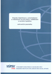KOTÍKOVÁ, Jaromíra. Dopady digitalizace, automatizace a robotizace na trh práce, vzdělávání a sociální systémy: zahraniční poznatky. Praha: VÚPSV, v.v.i., 2019. 81, 6 stran.