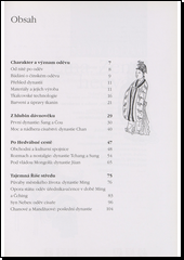 Původní práce o dějinách odívání v Číně. Pojednává o vývoji oděvu od prvního tisíciletí př.n.l. po dvacáté století, důraz však není kladen na historickou vývojovou linii, ale na vzájemné prolínání kulturní vlivů mezi etnickými Číňany a nečínskými národnostmi, až po 19. a 20. století a reflexi čínského tradičního oděvu v evropské módě a současnou tvorbu čínských a taiwanských módních návrhářů. Jednotlivé kapitoly stručně shrnují historický a kulturní vývoj jednotlivých období, dále následuje vývoj mužského a ženského oděvu, technologie a symbolika dekorů doplněná sociologií odívání a životního způsobu. Kapitoly jsou bohatě ilustrovány, jsou zde uvedeny i střihy a rozkresy na typické oděvy a dekory. Tato práce je vhodná pro zájemce o dějiny a kulturu Číny, výtvarné umění, textilní výrobu, oděvní návrhářství.
