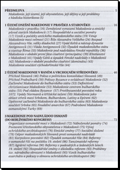 Podrobné a důkladné dějiny Makedonie od pravěku po současnost.Poměrně rozsáhlý úvod k monografii přibližuje českému čtenáři Makedonii, její území, obyvatelstvo, dějiny a současné problémy, a to i se všemi potížemi, které musí historik při sepsání této syntetické monografie překonat. Další kapitoly pak popisují územi Makedonie v pravěku, její dějiny ve starověku a středověku, Makedonii pod nadvládou osmanské říše, berlínský kongres r. 1878, problémy makedonského národního obrození, balkánské války a složité poměry v zemi v 1. pol. 20. století, což bylo ještě umocněno oběma světovými válkami. Další oddíl se věnuje Makedonii v rámci jugoslávské federace (1944-1991), tedy až ke vzniku samostatného státu. Zajímavá je i stať, která se zabývá makedonskou otázkou v české a slovenské politice 20. století. Poslední - poměrně rozsáhlý oddíl - je věnován nástinu dějin kultury na území Makedonie, a to ve všech dějinných etapách. Dodatky ke knize tvoří