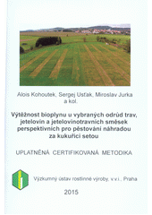 KOHOUTEK, Alois. Výtěžnost bioplynu u vybraných odrůd trav, jetelovin a jetelovinotravních směsek perspektivních pro pěstování náhradou za kukuřici setou. 1. vydání. Praha: Výzkumný ústav rostlinné výroby, v.v.i., 2015. 25 stran. Uplatněná certifikovaná metodika.